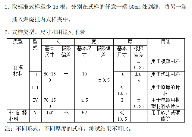全自动氧指数测试仪据 GB2406 规定,燃烧简内混合气气体流速为 40 厘米/秒,据此选择流量,玻璃筒内径为 100mm,则流入筒内的混合气流量范围为: 14.1L/min~23.6L/min,例如氧气浓度为15%时可取氮气流量为 12L/min,氧气流量为 2.1L/min。取标准试样 10 根,(对每根进行测量,并记录在试样一端50mm 处划线,将另一端插入燃烧筒内的试样夹中,其安装位置应符合 GB2406 规定)。