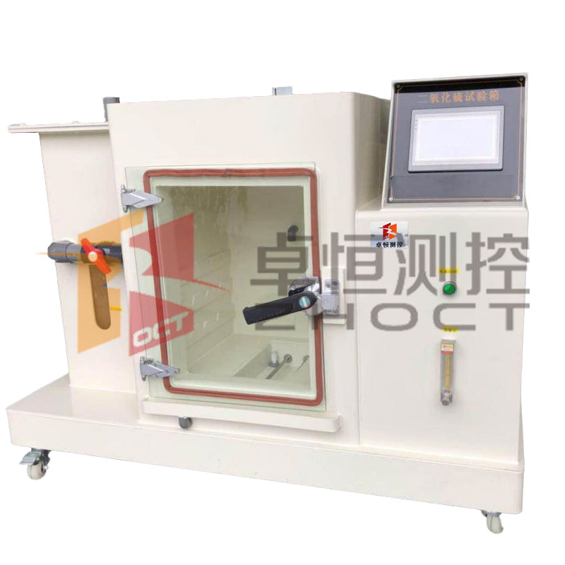 二氧化硫试验设备利用二氧化硫气体,在一定温度的环境下对材料或产品进行加速腐蚀,重现材料或产品在一定时间范围内所遭受的破坏程度。设备可以用来考核材料及其防护层的抗二氧化硫腐蚀的能力,以及相似防护层的工艺质量比较,也可以用来考核某些产品抗二氧化硫腐蚀的能力。该产品适用于零部件、电子元器件、金属材料的防护层以及工业产品的腐蚀气体试验。